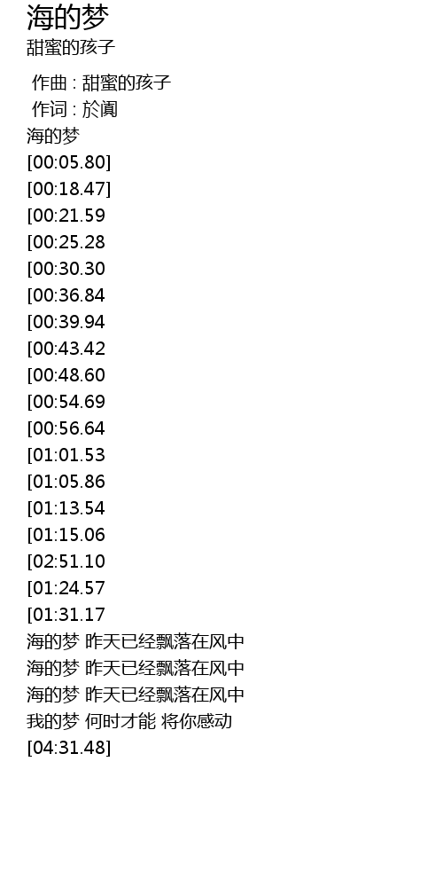 | [00:02.17] | 海的梦 |
