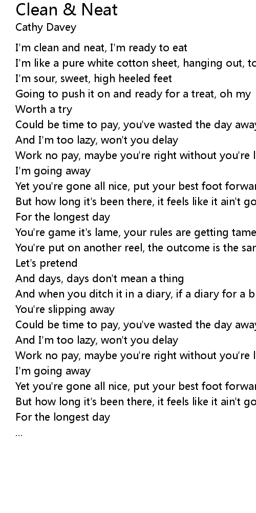 I'm like a pure white cotton sheet, hanging out, to dry |