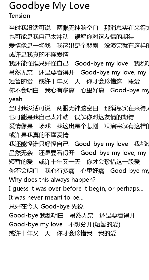 | [00:46.91] | wǒ hái néng guài shuí zhǐ hǎo guài zì jǐ Goodbye my love wǒ dōu míng bái |