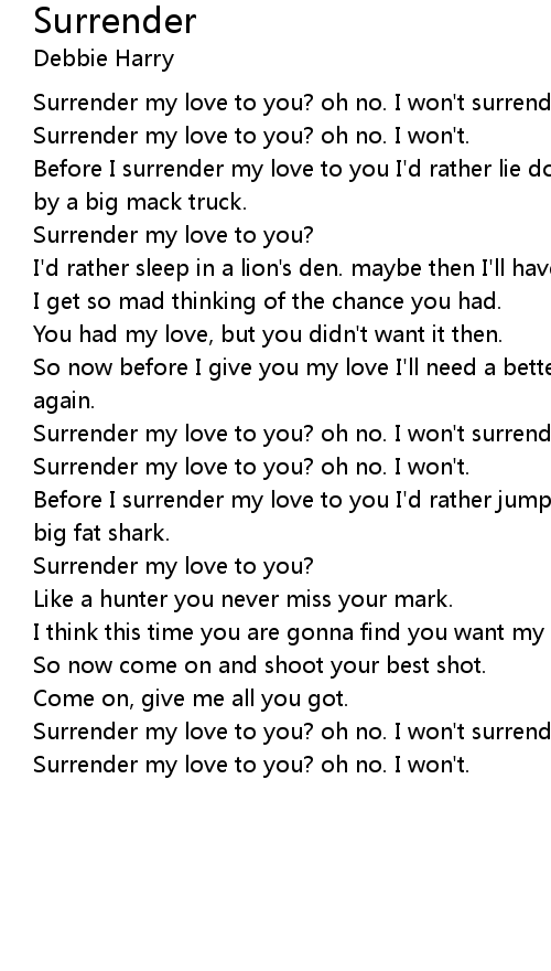 Surrender my love to you? oh no. I won't surrender. |