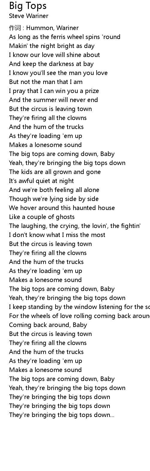 | The big tops are coming down, Baby | |
