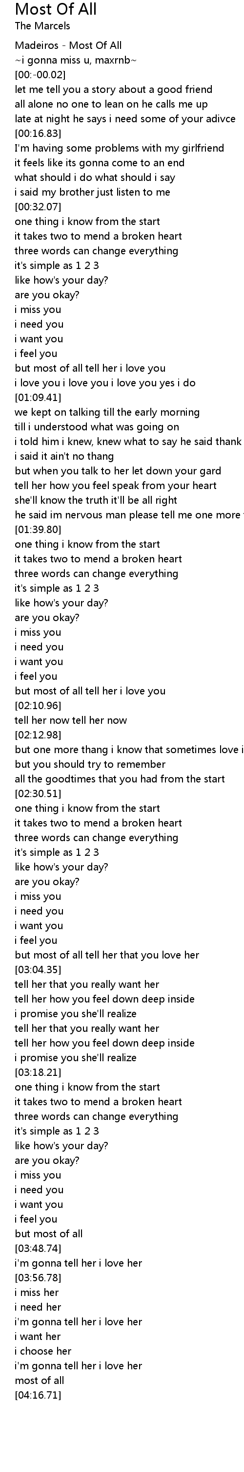 Most Of All Lyrics