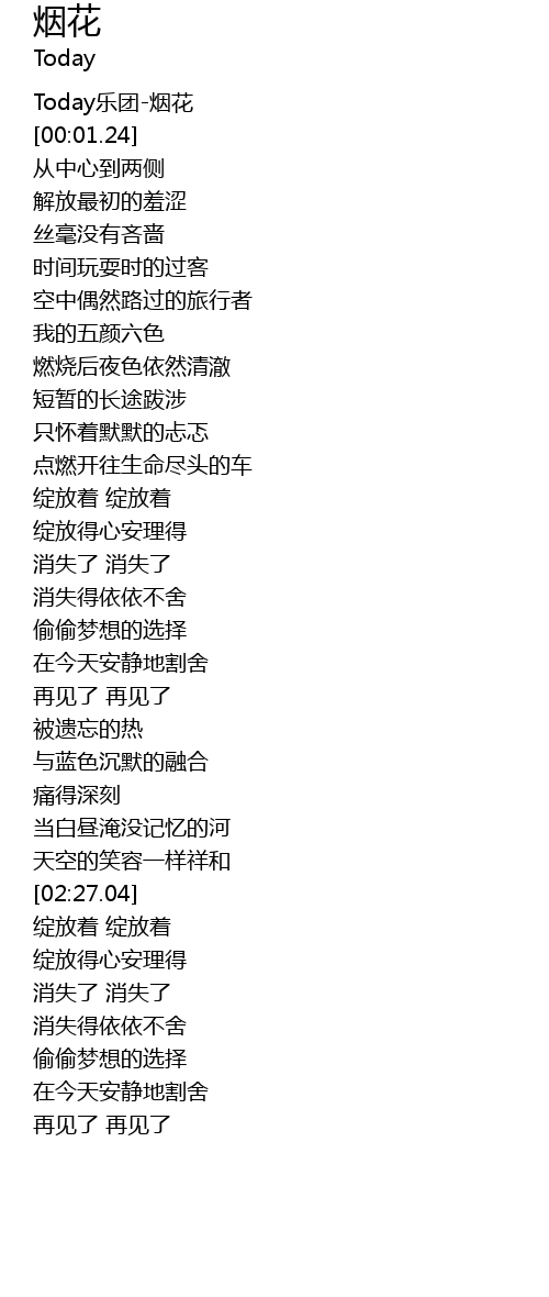 | [00:00.85] | Today乐团-烟花 |