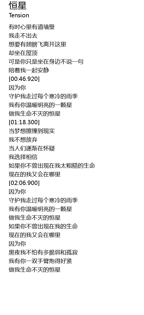| [03:04.600] | 做我生命不灭的恒星 |