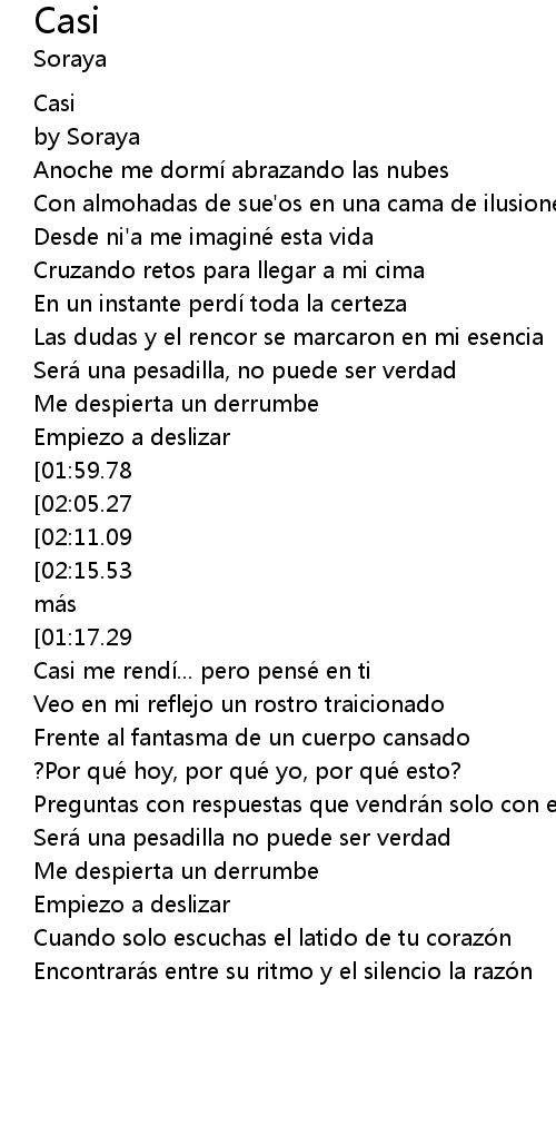 | [01:42.20] | Preguntas con respuestas que vendrá n solo con el tiempo |