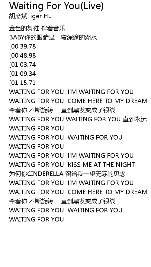 | [04:10.32] | WAITING FOR YOU I'M WAITING FOR YOU |