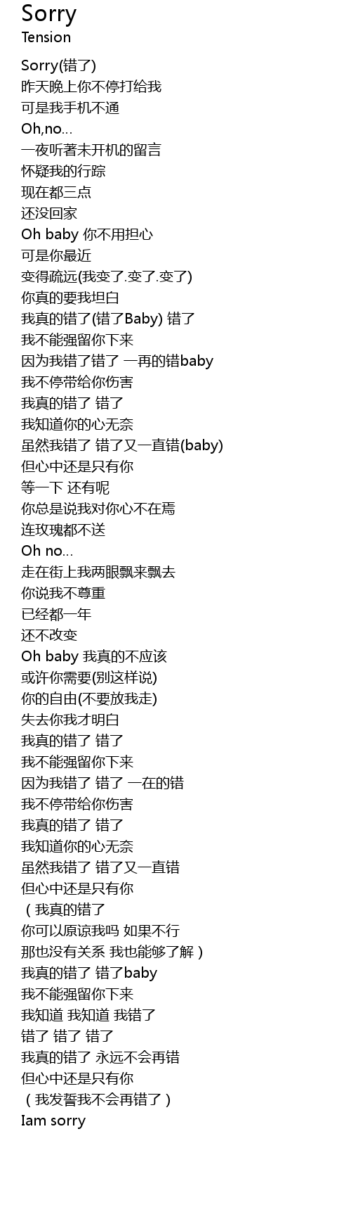 | [03:04.810] | wǒ zhēn de cuò le cuò le baby |