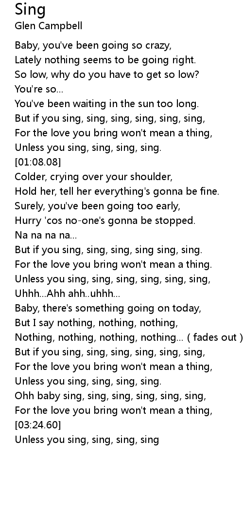 | [01:06.64] | Unless you sing, sing, sing, sing. |