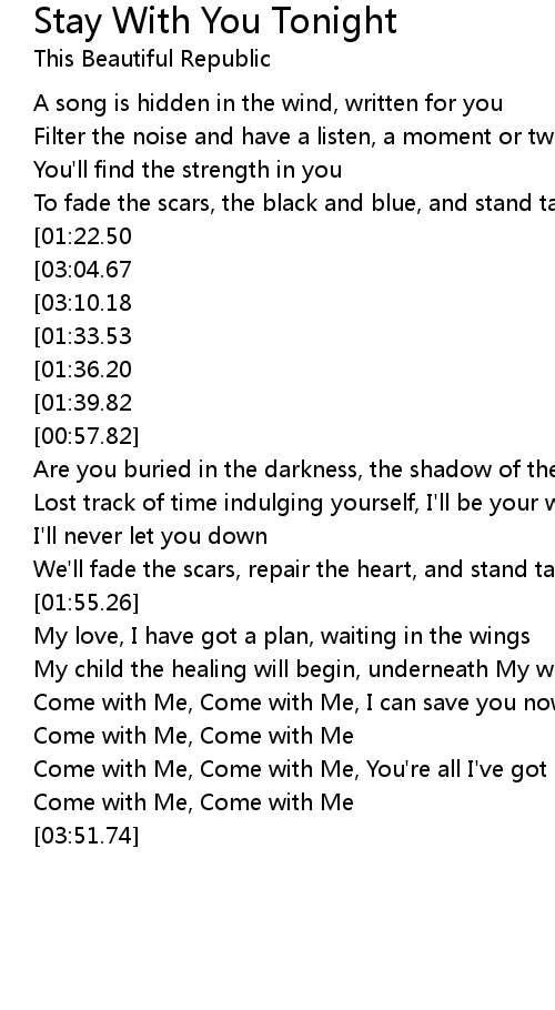 Come with Me, Come with Me, You're all I've got |