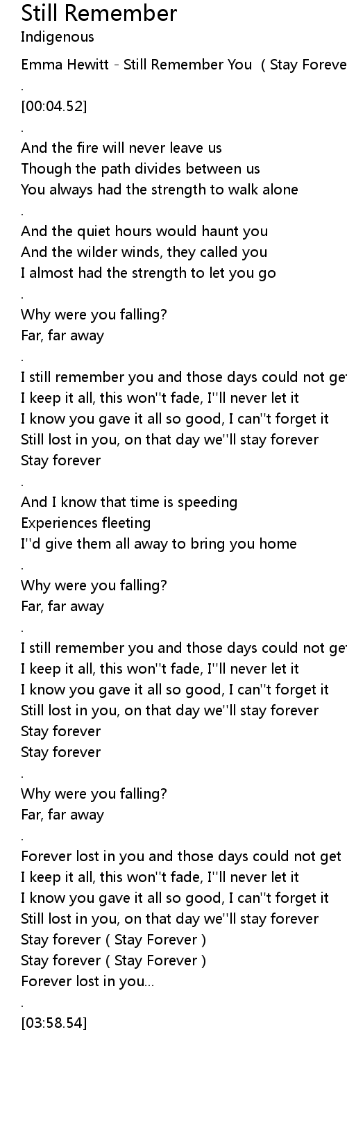 | [00:00.02] | Emma Hewitt - Still Remember You (Stay Forever) |
