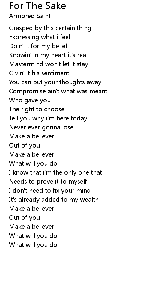 | Doin' it for my belief | |