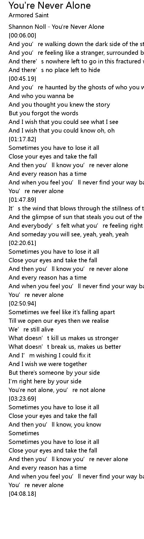 | [03:20.04] | You're not alone, you’re not alone |