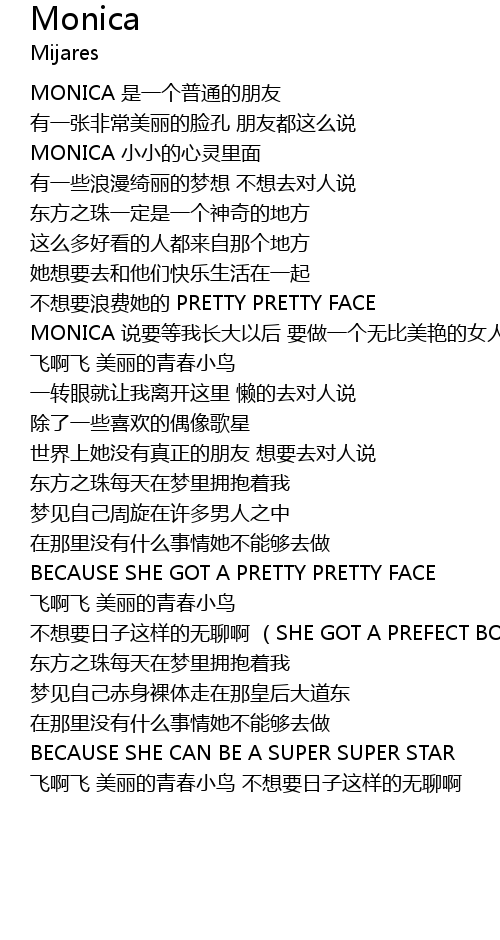 | [00:21.57] | MONICA 是一个普通的朋友 |