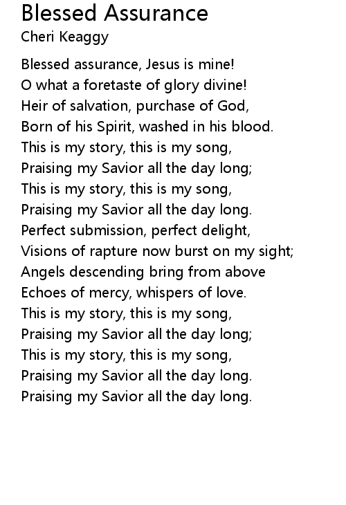 Blessed assurance, Jesus is mine! |