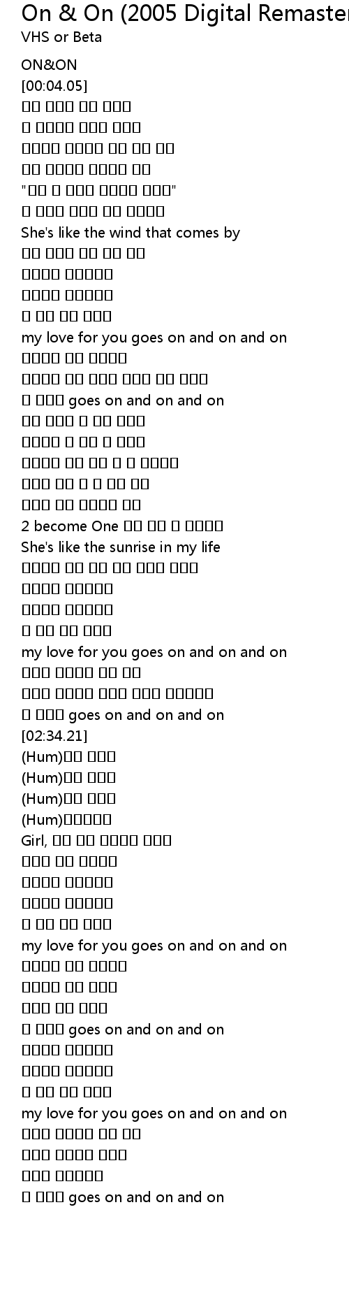| [01:04.35] | my love for you goes on and on and on |