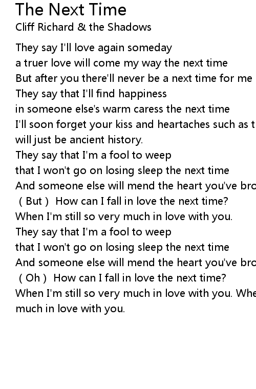 | [00:15.50] | a truer love will come my way the next time |