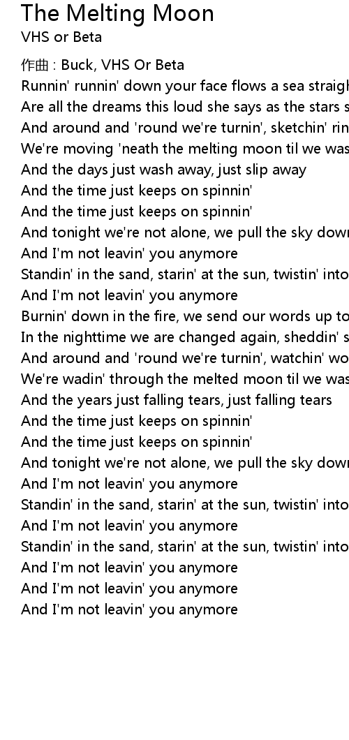 | We' re moving ' neath the melting moon til we wash the world away | |