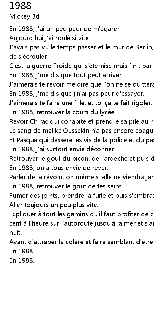 | En 1988, j' ai un peu peur de m'é garer. | |