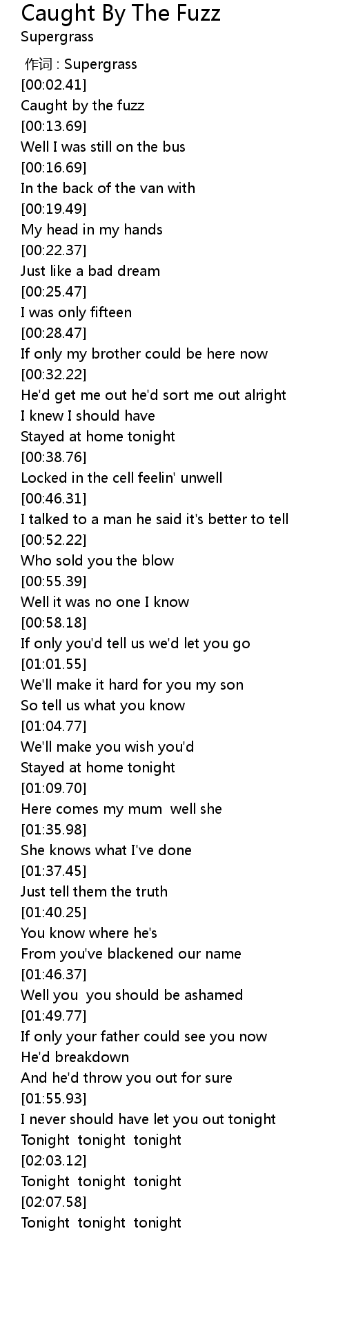 | [00:32.79] | He'd get me out he'd sort me out alright |