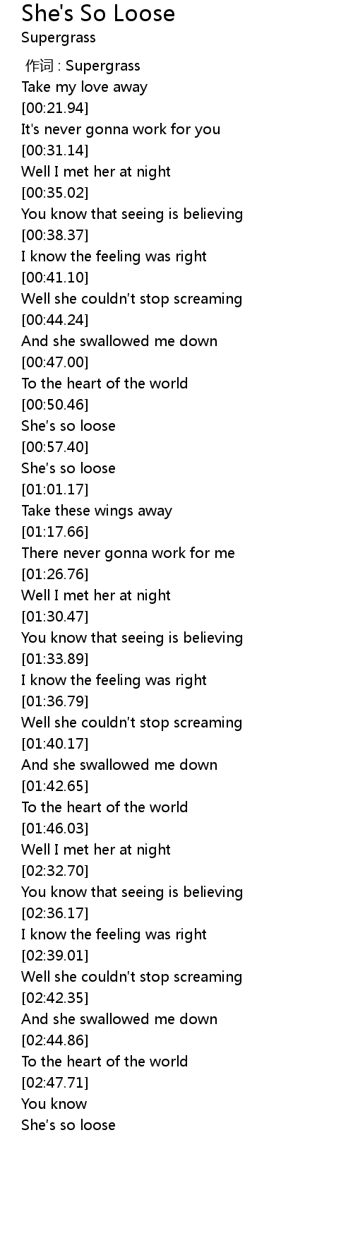 | [00:52.60] | She s so loose |