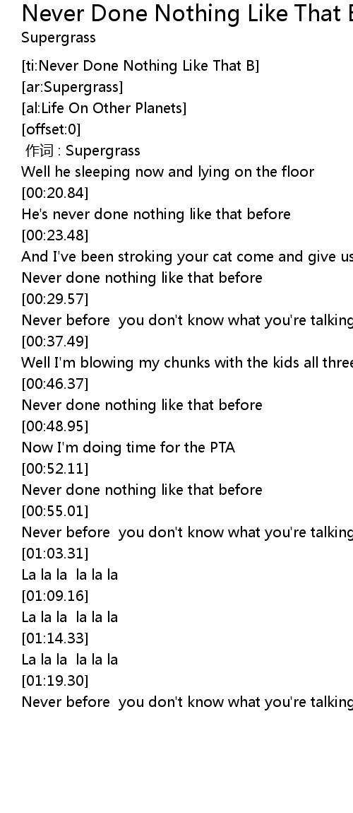 | [00:47.38] | Never done nothing like that before |