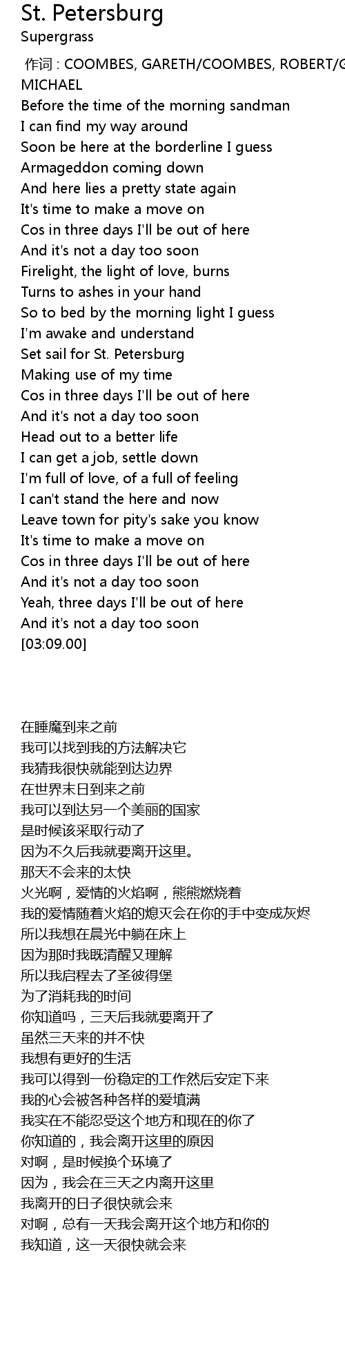 | [02:39.00] | Cos in three days I' ll be out of here |