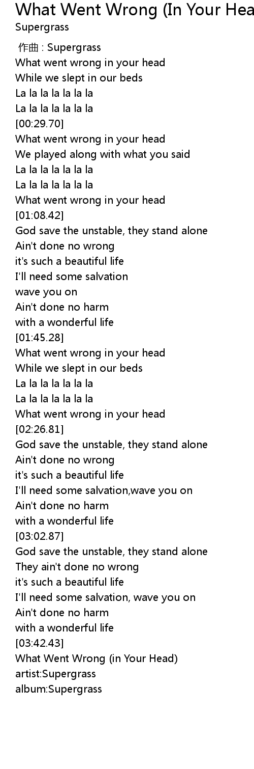 | [00:31.46] | What went wrong in your head |
