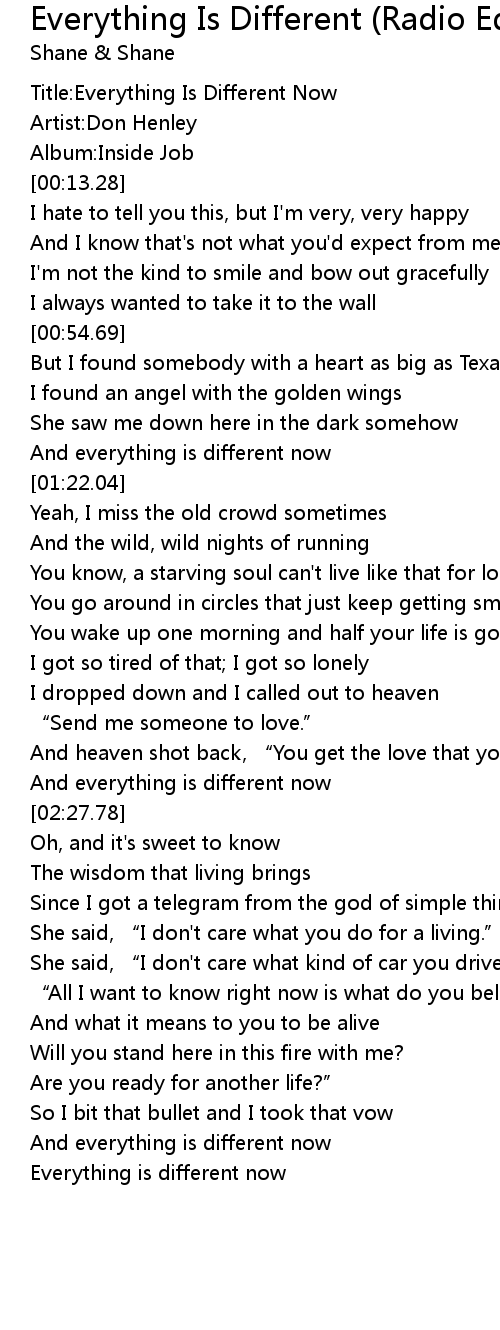 | [00:01.07] | Title: Everything Is Different Now |
