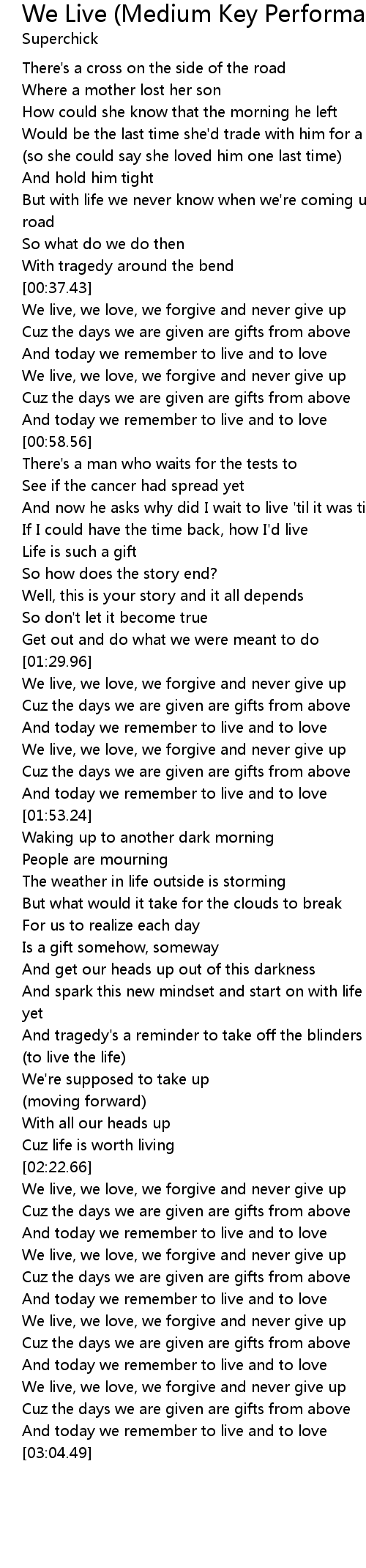 We Live (Medium Key Performance Track Without Background Vocals) Lyrics