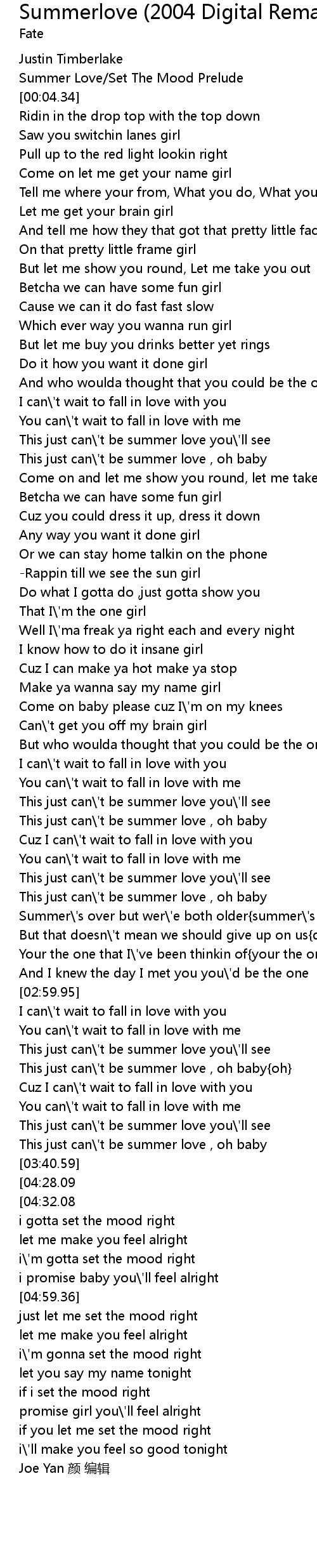 | [00:02.31] | Summer Love Set The Mood Prelude |