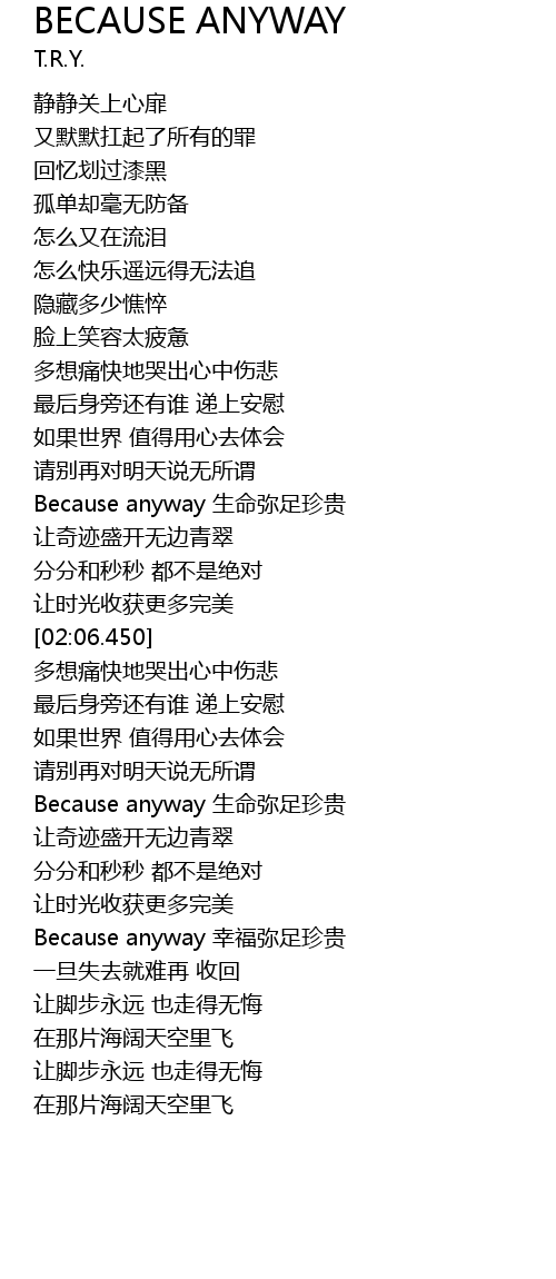 | [02:58.940] | Because anyway sheng ming mi zu zhen gui |