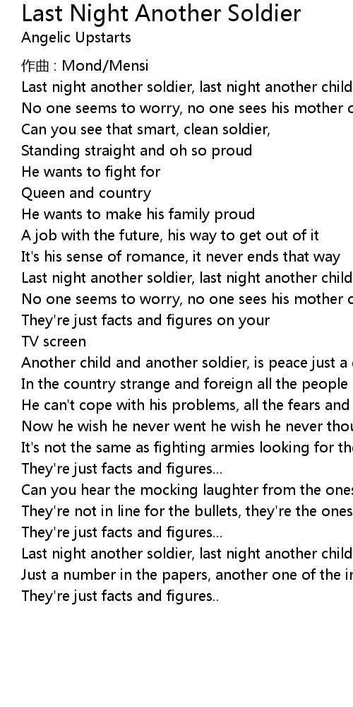 | Song | Last Night Another Soldier |