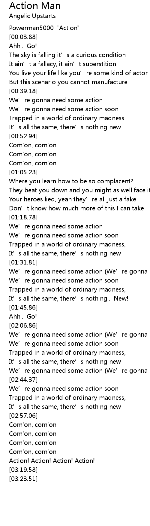 | [02:44.22] | We' re gonna need some action We' re gonna need some action |