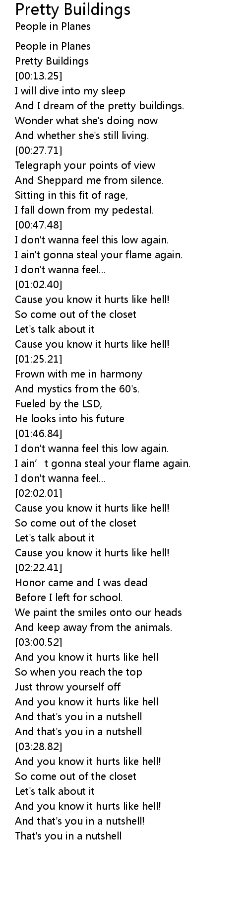 | [03:00.93] | And you know it hurts like hell |