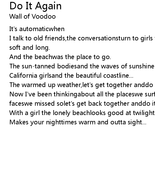 Now I've been thinkingabout all the placeswe surfed and danced,and all the faceswe missed solet's get back together anddo it again. |