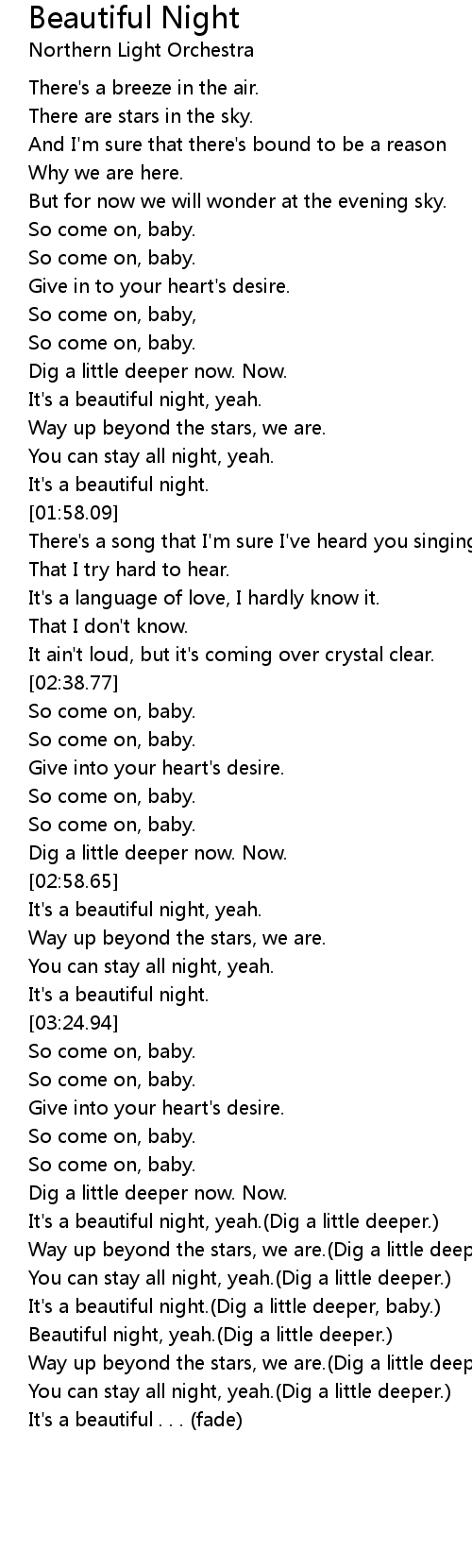 It's a beautiful night, yeah.(Dig a little deeper.) |