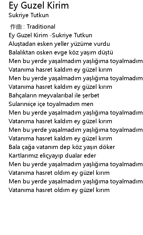 | [03:26.856] | Vatanıma hasret oldım ey güzel kırım |