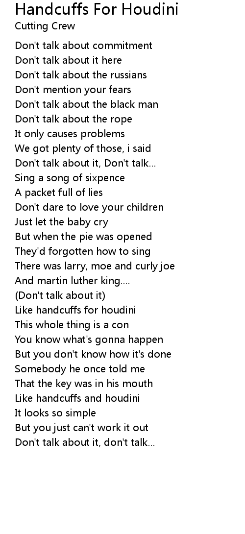 Like handcuffs and houdini |