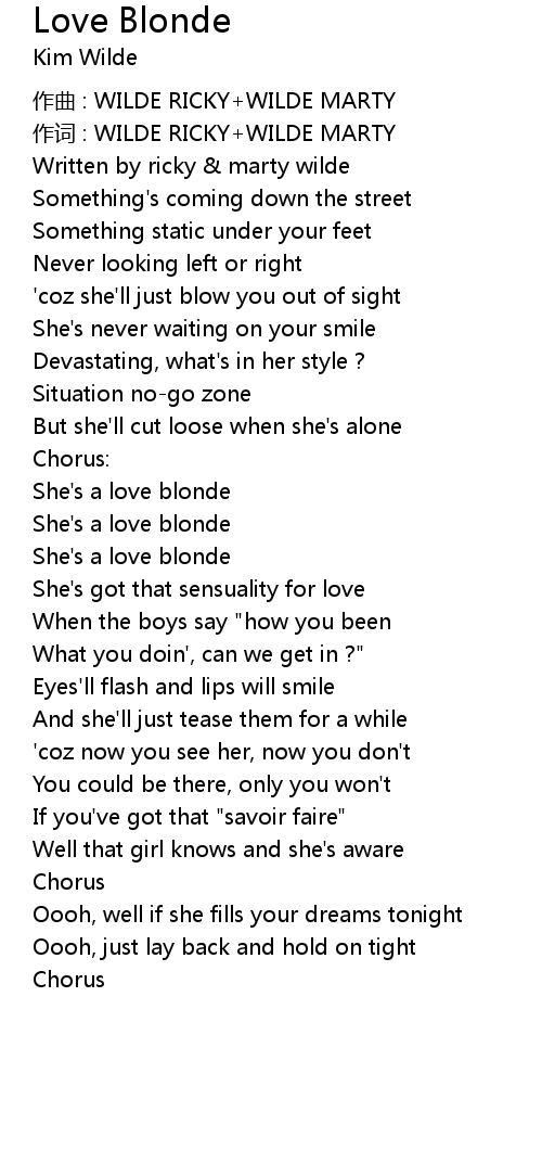 | 作词 : WILDE RICKY+WILDE MARTY | |