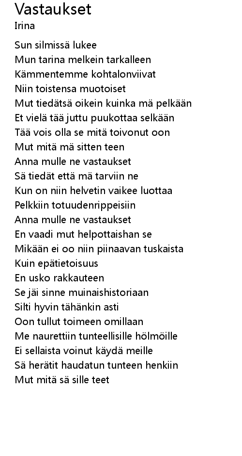 | Mut tiedätsä oikein kuinka mä pelkään | |