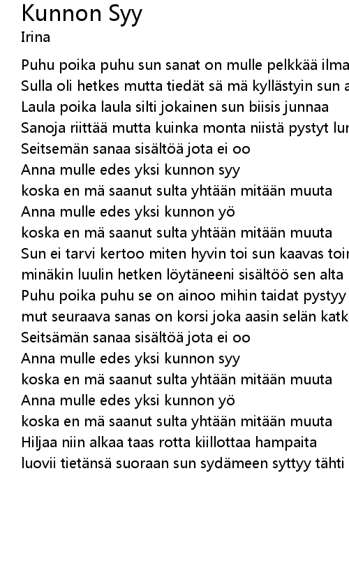 | Song | Kunnon Syy |