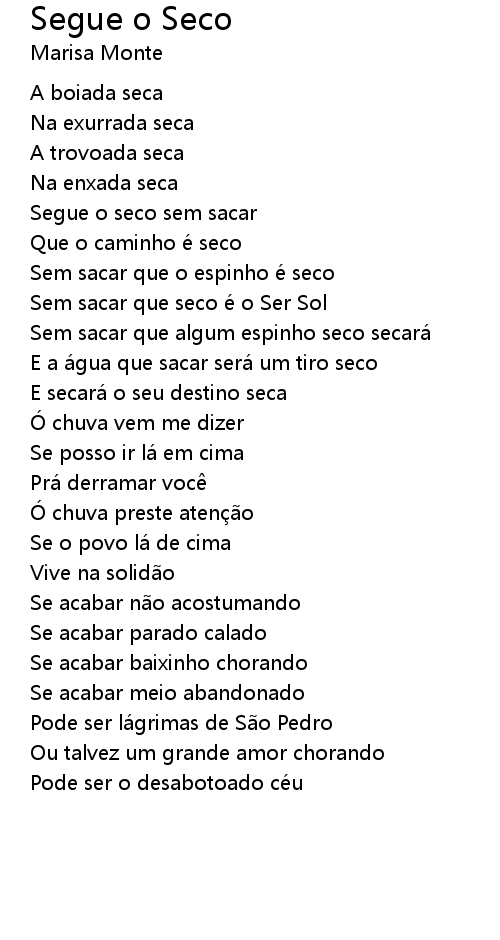 | Song | Segue o Seco |