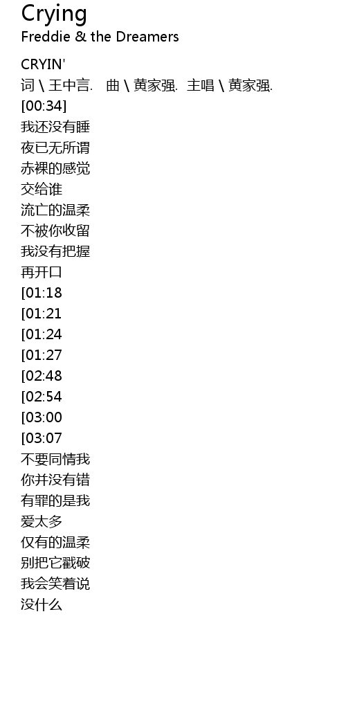| [00:17] | 词 \ 王中言. 曲 \ 黄家强. 主唱 \ 黄家强. |