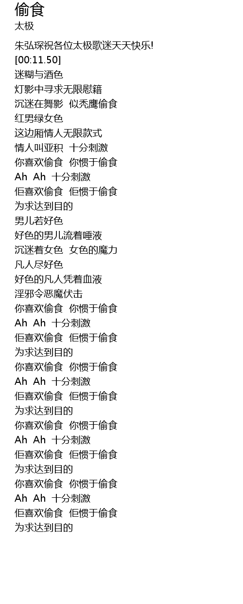 | [00:48.98] | qú xǐ huān tōu shí qú guàn yú tōu shí |
