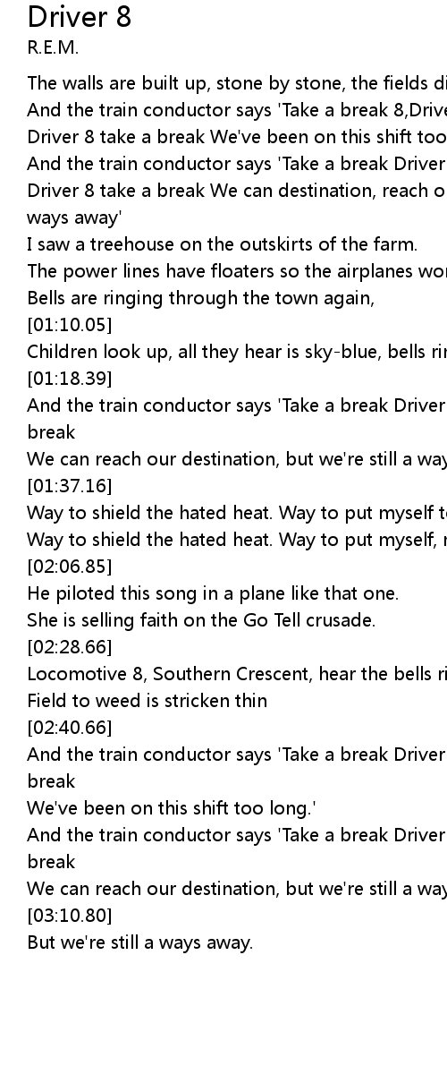 And the train conductor says 'Take a break Driver 8, Driver 8 take a break |