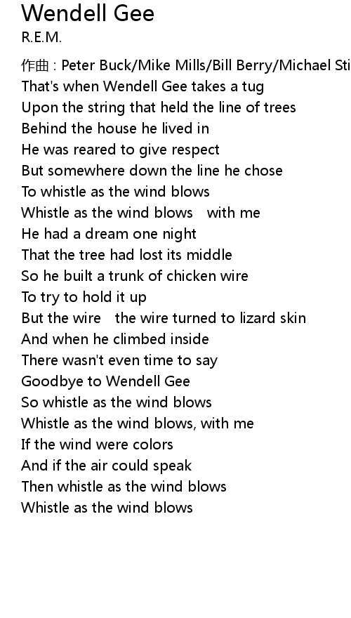 | zuò qǔ : Peter Buck Mike Mills Bill Berry Michael Stipe | |