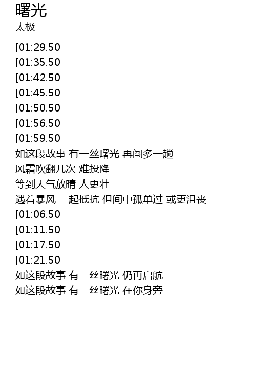 | [02:56.50][01:29.50][00:00.00] | 静盼曙光 梦想的天国 |
