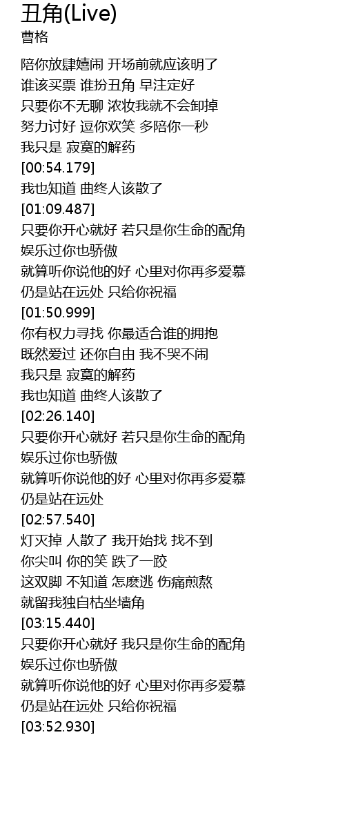 | [03:16.950] | 只要你开心就好 我只是你生命的配角 |