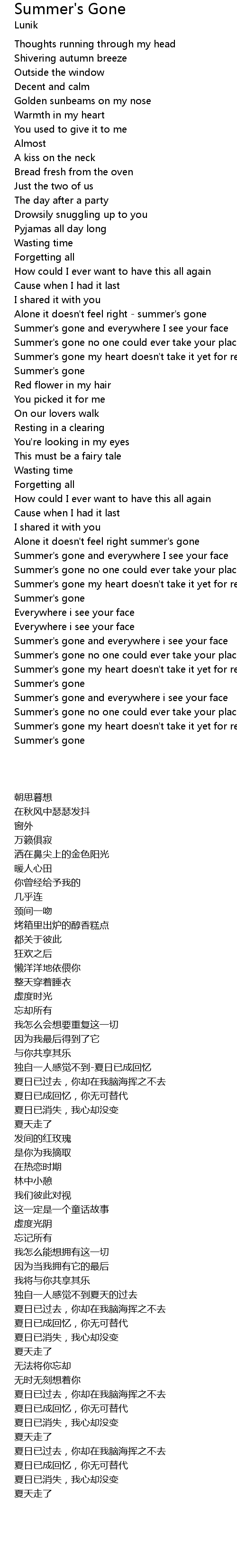Summer's gone no one could ever take your place |