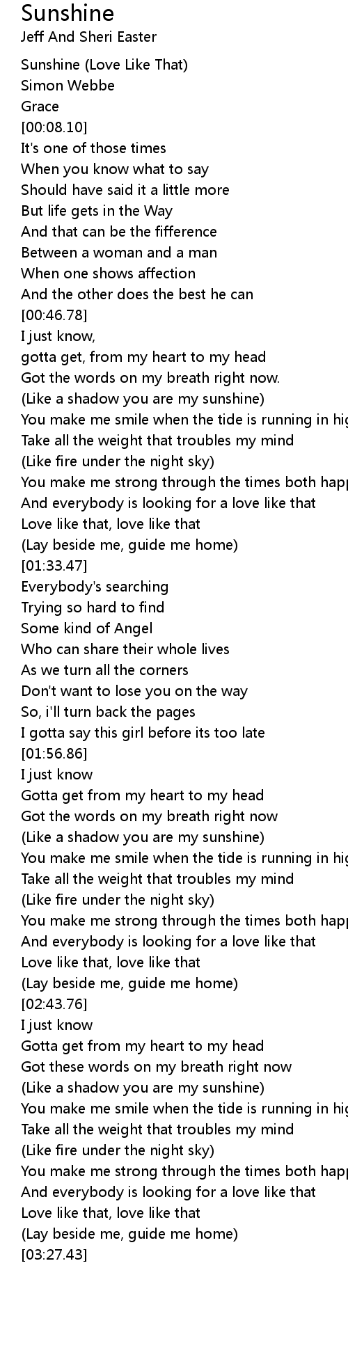 [00:00.00] Sunshine (Love Like That)